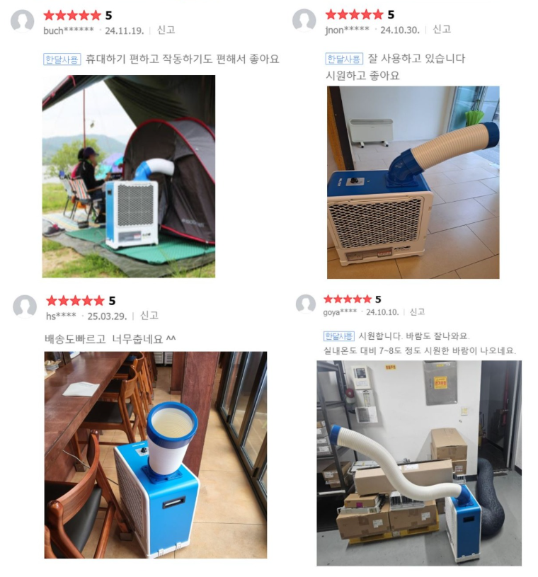 실제 사용자들은 "생각보다 시원함이 강력", "시골 농막·차박에 최적"이라며 사용 후기를 통해 구매 만족도를 입증하고 있습니다.