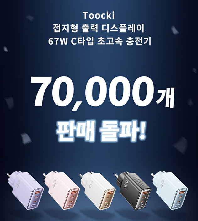 현재 별점 4.7점, 리뷰 4573개를 가진 Toocki GaN PPS 67W 3포트 접지형 디스플레이 초고속 멀티충전기! 지금 쿠팡에서 더 저렴하고 다양한 충전기 제품들을 확인해보세요.